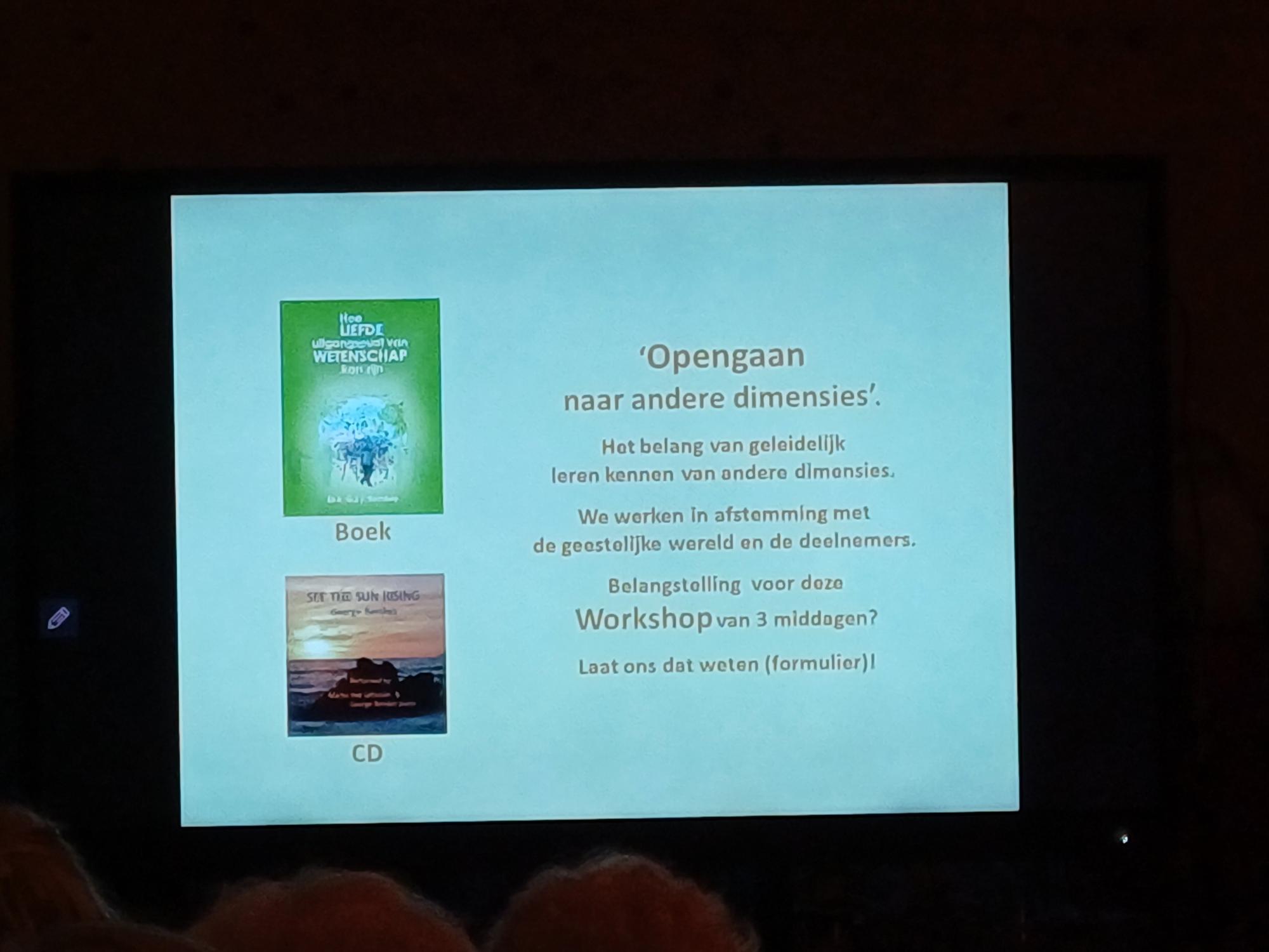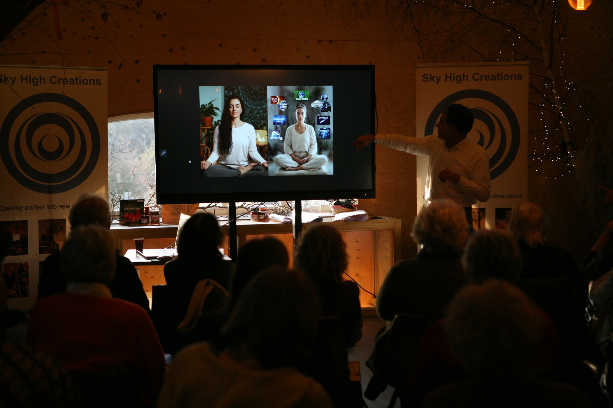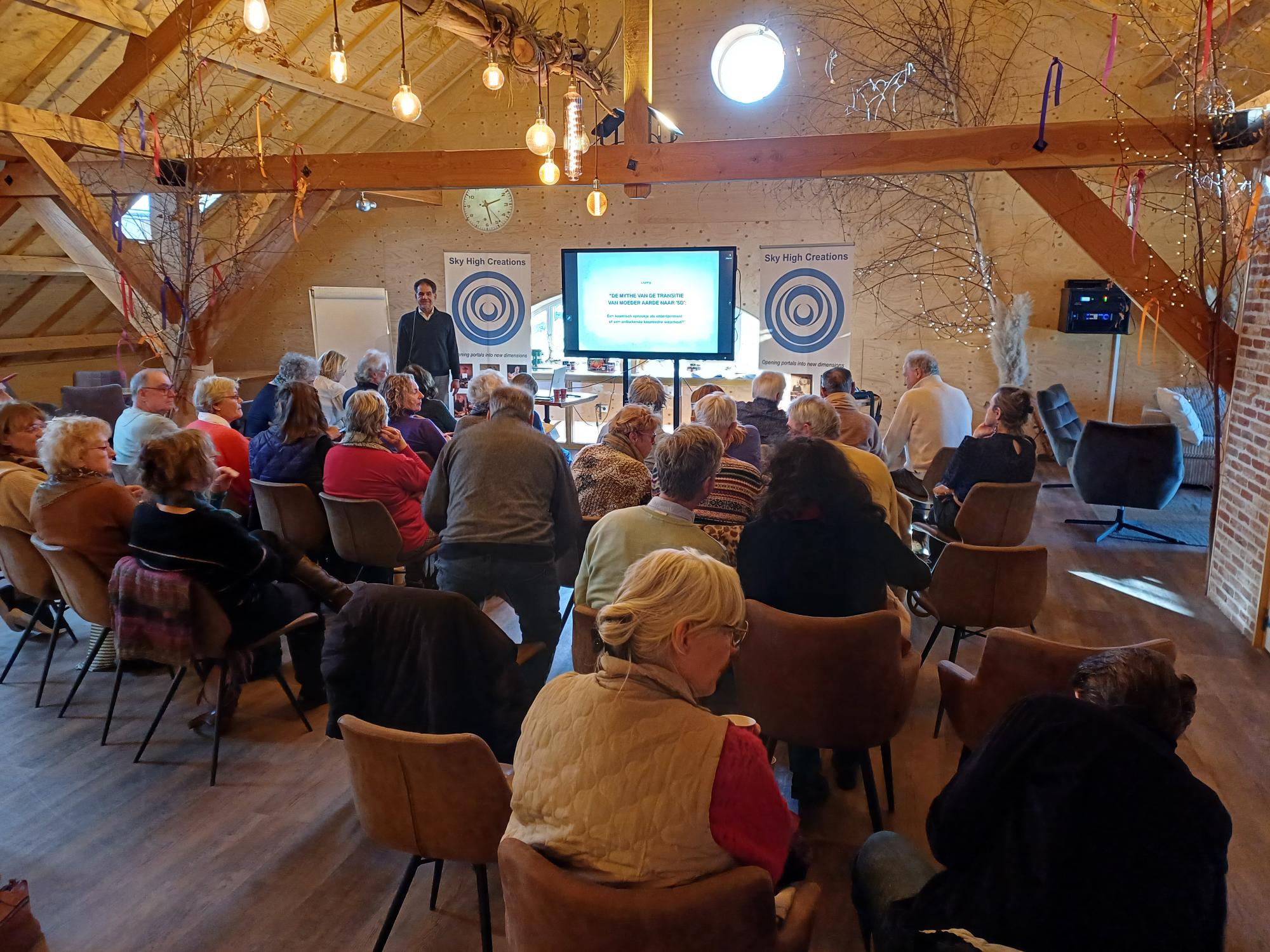 Foto’s De foto’s zijn gemaakt tijdens de evenementen van Sky High Creations. Janet Ossebaard - De graancirkels van 2011 (28 sept 2011) Andreas Heilingbrunner - De Mythe van 5D (17 januari 2026) 15 Foto's George Remkes - Hoe liefde uitgangspunt van wetenschap kan zijn (20 dec 2025) 16 Foto's Stef Freriks - De Verandering 2 (29 november 2025) 9 Foto's Daniël Derweduwen - Verdieping Germaanse Geneeskunde II (11 oktober 2025) 10 Foto's Daniël Derweduwen - Verdieping Germaanse Geneeskunde I (13 september 2025) 15 Foto's Bert Janssen - Nikola Tesla en de Time Travellers (30 augustus 2025) 15 Foto's Rolf Nuyts - De weg uit de Matrix, de code gekraakt (28-6-25) 16 Foto's Daniël Derweduwen - Basis Germaanse Geneeskunde (24 mei 2025) 9 Foto's Isabelle Duchene - Het Christus-Effect (19 april 2025) 10 Foto's Stef Freriks - Verandering (22 maart 2025) 14 Foto's Roeland Beljon - Graancirkels 30 jaar verder (15 feb 2025) 7 Foto's Saskia Bosman - De Geheimen van Sardinië (25 januari 2025) 8 Foto's Isabelle Duchene - Spiritualiteit in sprookjes en kerstverhalen (14 dec 2024) 7 Foto's Roeland Beljon - De Graancirkels van 2024 en meer (7 november 2024 bij Stichting Er is meer) 11 Foto's Richard Hoofs - Bezield leven op doktersrecept (26 oktober 2024) 11 Foto's Daniël Derweduwen - De Dramadriehoek (12 oktober 2024) 15 Foto's Arjan Tax - Morfische Velden en Krachtplekken (28 september 2024) 17 Foto's A Night of Crop Circling 2024 (July 31st 2024) 15 Foto's Daniël Derweduwen - Het Kindstuk in jezelf helen deel II (29 juni 2024) 21 Foto's Daniel Derweduwen - Het Kinsdtuk in jezelf helen (deel 1, 15 juni 2024) 12 Foto's Wim Roskam en Marianne Agterdenbos - Atlantis, Akaija en de gekantelde evenaar van de Oudheid 16 Foto's Roeland Beljon - De graancirkels van 2022 en 2023 (4 mei 2024) 7 Foto's Femke Bloem - Drie Engelen Harpmeditatie , lente editie (20 april 2024) 9 Foto's Semir Osmanagic - Pyramids as ancient energy machines (24 maart 2024) 16 Foto's Bert Janssen - Voorbij Ruimte en Tijd (16 maart 2024) 31 Foto's Janneke Monshouwer - Het ware ontstaan van de staat Israël (2 maart 2024) 24 Foto's Isabelle Duchene - De Oppenheimers van de Spirituele Wereld (27 januari 2024) 25 Foto's Nancy Polet - Sekhmet, de perfecte Godin voor deze tijd (13 januari 2024) 1 Foto's Nancy Polet - Krishna-Tempels en het belang van Krishna in deze tijd (16 december 2023) 1 Foto's Ard Pisa - Ancient Mysteries & Energies (9 december 2023) 22 Foto's Nancy Polet - Kundalini Ontwaken, Intercourse with the Gods (18 november 2023) 15 Foto's Peter den Haring - Nut en Noodzaak van Auraschoonmaken (11-11-23) 18 Foto's Isabelle Duchene - Lesley Flint (21 oktober 2023) 15 Foto's Franklin Sluijters - Hypnose, Mogelijkheden en Misverstanden 20 Foto's Saskia Bosman - De Shumann Resonantie ( 9 september 2023) 13 Foto's Isabelle Duchene - Het kleurboek van Hollywoord (22 juli 2023) 7 Foto's Isabelle Duchene - Healing als visitekaartje voor de spirit (1 juli 2023) 7 Foto's Janneke Monshouwer - Opkomen voor de mensheid, opkomen voor soevereiniteit (24 juni 2023) 8 Foto's Tjeerd Gorter - Van Callanish tot Carnac (10 juni 2023) 23 Foto's Yasmin Verschure - Inner Reset, De Magie van het Leven (27 mei 2023) 13 Foto's Aschwin Goes - Autonoom of soeverein, doorzie de matrix (13 mei 2023) 27 Foto's Roeland Beljon - De graancirkels van 2022 en meer (8 april 2023) 14 Foto's Ard Pisa - Ancient Mysteries & Energies (25 naart 2023) 25 Foto's Gitta Sluijters - Wat moeten we dan? Een andere kijk op genezing. En de kracht van plantmedicijnen (11 maart 2023) 16 Foto's Eric Huysmans - Esoterische Astrologie en de route naar 2025 (25 feb 2023) 28 Foto's Benjamin Adamah - Creër je eigen hulpgeest (11 februari 2023) 13 Foto's Gitta Sluijters - Big Pharma (21 januari 2023) 26 Foto's Peter Toonen - Het huidige tijdsgewricht volgens de Maya kalenders (7 jan 2023) 34 Foto's Paul Smit - Nondualiteit (10 december 2022) 23 Foto's Ganga Hoogendoorn - Leven van Prana (26 november 2022) 22 Foto's Peter den Haring - Bestaat Reïncarnatie echt? (22 oktober 2022) 16 Foto's Roeland Beljon en Fraukje Ramona Weishaupt – "De Graancirkels van 2022, alles draait om Manifestatie" (24 september 2022) 8 Foto's Peter Toonen - Natuurwezens, contact met de natuur (Infinite Source Creations (4 sept 2022) 9 Foto's De Dromen van Igor - Igor Eeckhaut (27 aug 2022) 26 Foto's A Night of Crop Circling 2022 (July 27th 2022) 56 Foto's Elze van Hamelen - Psychische weerbaarheid in onzekere tijden (9 juli 2022) 33 Foto's Johan Keijser - De Taal van Graancirkels (Videovertoning 2 juli 2022) 6 Foto's Randell - Graancirkels naar Verlichting (11 juni 2022) 41 Foto's Prof. dr. Hans Gerding - Contact met overleden dierbaren (4 juni 2022) 49 Foto's Peter Toonen = Hoe kom je uit de Controle-Matrix 47 Foto's Han Touw - Wereld in Transitie (7 mei 2022) 24 Foto's Saskia Bosman - Sleutels tot verjonging, evolutie en rust (16 april 2022) 8 Foto's Aro Ananda - Ik vind je terug (9 april 2022) 42 Foto's Nancy Polet - Sekhmet, de perfecte Godin voor deze tijd (2 april 2022) 20 Foto's Olaf van der Hoeven - Astrale Operaties (12 februari 2022) 29 Foto's Michelle Shanti - Klank als poort naar de vijfde dimensie en de terugkeer van de Godin (29 jan 2022) 46 Foto's Désirée Röver - Covid-vaccins, wat zit daar nou eigenlijk in? (5 dec 2022) 19 Foto's Saskia Bosman - Pijnappelklier 3 daagse deel I (6 november 2021) 12 Foto's Maarten Oversier - Bestaansrecht (16 oktober 2021) 51 Foto's Michelle Shanti - De Innerlijke Vrouw staat op (18 september 2021) 31 Foto's Bart Uytterhaegen - Ufo's officieel erkend (5 september 2021) 39 Foto's Frank Stadermann - De Ongrijpbare Orb (22 aug 2021) 30 Foto's Richard Hoofs - Heelmeesters, holisme uit Oud-Egypte (15 aug 2021) 35 Foto's Discussiemiddag "Covid-crisis, de situatie is onvoorspelbaar" (25 juli 2021) 17 Foto's Peter den Haring - De Uitverkorenen en hun Slachtoffers (11 juli 2021) 31 Foto's Eric Huysmans - Workshop Esoterische Astrologie (24 okt 2020) 16 Foto's Bart Batema