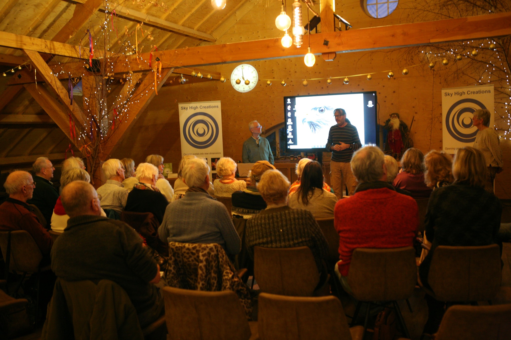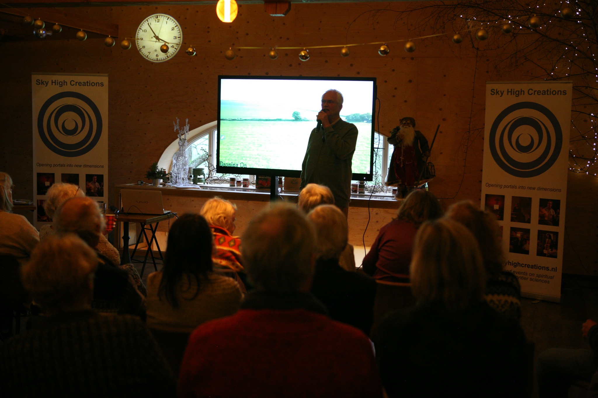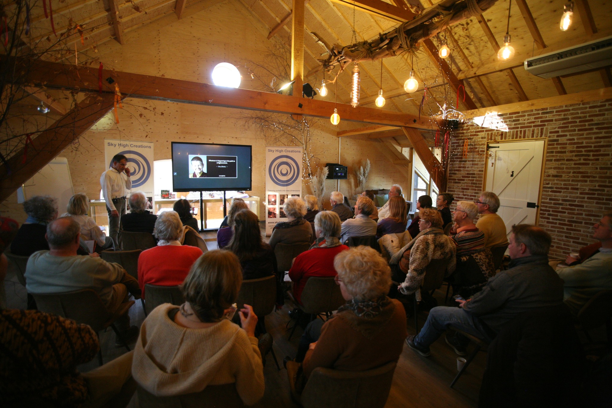 Foto’s De foto’s zijn gemaakt tijdens de evenementen van Sky High Creations. Janet Ossebaard - De graancirkels van 2011 (28 sept 2011) Andreas Heilingbrunner - De Mythe van 5D (17 januari 2026) 15 Foto's George Remkes - Hoe liefde uitgangspunt van wetenschap kan zijn (20 dec 2025) 16 Foto's Stef Freriks - De Verandering 2 (29 november 2025) 9 Foto's Daniël Derweduwen - Verdieping Germaanse Geneeskunde II (11 oktober 2025) 10 Foto's Daniël Derweduwen - Verdieping Germaanse Geneeskunde I (13 september 2025) 15 Foto's Bert Janssen - Nikola Tesla en de Time Travellers (30 augustus 2025) 15 Foto's Rolf Nuyts - De weg uit de Matrix, de code gekraakt (28-6-25) 16 Foto's Daniël Derweduwen - Basis Germaanse Geneeskunde (24 mei 2025) 9 Foto's Isabelle Duchene - Het Christus-Effect (19 april 2025) 10 Foto's Stef Freriks - Verandering (22 maart 2025) 14 Foto's Roeland Beljon - Graancirkels 30 jaar verder (15 feb 2025) 7 Foto's Saskia Bosman - De Geheimen van Sardinië (25 januari 2025) 8 Foto's Isabelle Duchene - Spiritualiteit in sprookjes en kerstverhalen (14 dec 2024) 7 Foto's Roeland Beljon - De Graancirkels van 2024 en meer (7 november 2024 bij Stichting Er is meer) 11 Foto's Richard Hoofs - Bezield leven op doktersrecept (26 oktober 2024) 11 Foto's Daniël Derweduwen - De Dramadriehoek (12 oktober 2024) 15 Foto's Arjan Tax - Morfische Velden en Krachtplekken (28 september 2024) 17 Foto's A Night of Crop Circling 2024 (July 31st 2024) 15 Foto's Daniël Derweduwen - Het Kindstuk in jezelf helen deel II (29 juni 2024) 21 Foto's Daniel Derweduwen - Het Kinsdtuk in jezelf helen (deel 1, 15 juni 2024) 12 Foto's Wim Roskam en Marianne Agterdenbos - Atlantis, Akaija en de gekantelde evenaar van de Oudheid 16 Foto's Roeland Beljon - De graancirkels van 2022 en 2023 (4 mei 2024) 7 Foto's Femke Bloem - Drie Engelen Harpmeditatie , lente editie (20 april 2024) 9 Foto's Semir Osmanagic - Pyramids as ancient energy machines (24 maart 2024) 16 Foto's Bert Janssen - Voorbij Ruimte en Tijd (16 maart 2024) 31 Foto's Janneke Monshouwer - Het ware ontstaan van de staat Israël (2 maart 2024) 24 Foto's Isabelle Duchene - De Oppenheimers van de Spirituele Wereld (27 januari 2024) 25 Foto's Nancy Polet - Sekhmet, de perfecte Godin voor deze tijd (13 januari 2024) 1 Foto's Nancy Polet - Krishna-Tempels en het belang van Krishna in deze tijd (16 december 2023) 1 Foto's Ard Pisa - Ancient Mysteries & Energies (9 december 2023) 22 Foto's Nancy Polet - Kundalini Ontwaken, Intercourse with the Gods (18 november 2023) 15 Foto's Peter den Haring - Nut en Noodzaak van Auraschoonmaken (11-11-23) 18 Foto's Isabelle Duchene - Lesley Flint (21 oktober 2023) 15 Foto's Franklin Sluijters - Hypnose, Mogelijkheden en Misverstanden 20 Foto's Saskia Bosman - De Shumann Resonantie ( 9 september 2023) 13 Foto's Isabelle Duchene - Het kleurboek van Hollywoord (22 juli 2023) 7 Foto's Isabelle Duchene - Healing als visitekaartje voor de spirit (1 juli 2023) 7 Foto's Janneke Monshouwer - Opkomen voor de mensheid, opkomen voor soevereiniteit (24 juni 2023) 8 Foto's Tjeerd Gorter - Van Callanish tot Carnac (10 juni 2023) 23 Foto's Yasmin Verschure - Inner Reset, De Magie van het Leven (27 mei 2023) 13 Foto's Aschwin Goes - Autonoom of soeverein, doorzie de matrix (13 mei 2023) 27 Foto's Roeland Beljon - De graancirkels van 2022 en meer (8 april 2023) 14 Foto's Ard Pisa - Ancient Mysteries & Energies (25 naart 2023) 25 Foto's Gitta Sluijters - Wat moeten we dan? Een andere kijk op genezing. En de kracht van plantmedicijnen (11 maart 2023) 16 Foto's Eric Huysmans - Esoterische Astrologie en de route naar 2025 (25 feb 2023) 28 Foto's Benjamin Adamah - Creër je eigen hulpgeest (11 februari 2023) 13 Foto's Gitta Sluijters - Big Pharma (21 januari 2023) 26 Foto's Peter Toonen - Het huidige tijdsgewricht volgens de Maya kalenders (7 jan 2023) 34 Foto's Paul Smit - Nondualiteit (10 december 2022) 23 Foto's Ganga Hoogendoorn - Leven van Prana (26 november 2022) 22 Foto's Peter den Haring - Bestaat Reïncarnatie echt? (22 oktober 2022) 16 Foto's Roeland Beljon en Fraukje Ramona Weishaupt – "De Graancirkels van 2022, alles draait om Manifestatie" (24 september 2022) 8 Foto's Peter Toonen - Natuurwezens, contact met de natuur (Infinite Source Creations (4 sept 2022) 9 Foto's De Dromen van Igor - Igor Eeckhaut (27 aug 2022) 26 Foto's A Night of Crop Circling 2022 (July 27th 2022) 56 Foto's Elze van Hamelen - Psychische weerbaarheid in onzekere tijden (9 juli 2022) 33 Foto's Johan Keijser - De Taal van Graancirkels (Videovertoning 2 juli 2022) 6 Foto's Randell - Graancirkels naar Verlichting (11 juni 2022) 41 Foto's Prof. dr. Hans Gerding - Contact met overleden dierbaren (4 juni 2022) 49 Foto's Peter Toonen = Hoe kom je uit de Controle-Matrix 47 Foto's Han Touw - Wereld in Transitie (7 mei 2022) 24 Foto's Saskia Bosman - Sleutels tot verjonging, evolutie en rust (16 april 2022) 8 Foto's Aro Ananda - Ik vind je terug (9 april 2022) 42 Foto's Nancy Polet - Sekhmet, de perfecte Godin voor deze tijd (2 april 2022) 20 Foto's Olaf van der Hoeven - Astrale Operaties (12 februari 2022) 29 Foto's Michelle Shanti - Klank als poort naar de vijfde dimensie en de terugkeer van de Godin (29 jan 2022) 46 Foto's Désirée Röver - Covid-vaccins, wat zit daar nou eigenlijk in? (5 dec 2022) 19 Foto's Saskia Bosman - Pijnappelklier 3 daagse deel I (6 november 2021) 12 Foto's Maarten Oversier - Bestaansrecht (16 oktober 2021) 51 Foto's Michelle Shanti - De Innerlijke Vrouw staat op (18 september 2021) 31 Foto's Bart Uytterhaegen - Ufo's officieel erkend (5 september 2021) 39 Foto's Frank Stadermann - De Ongrijpbare Orb (22 aug 2021) 30 Foto's Richard Hoofs - Heelmeesters, holisme uit Oud-Egypte (15 aug 2021) 35 Foto's Discussiemiddag "Covid-crisis, de situatie is onvoorspelbaar" (25 juli 2021) 17 Foto's Peter den Haring - De Uitverkorenen en hun Slachtoffers (11 juli 2021) 31 Foto's Eric Huysmans - Workshop Esoterische Astrologie (24 okt 2020) 16 Foto's Bart Batema